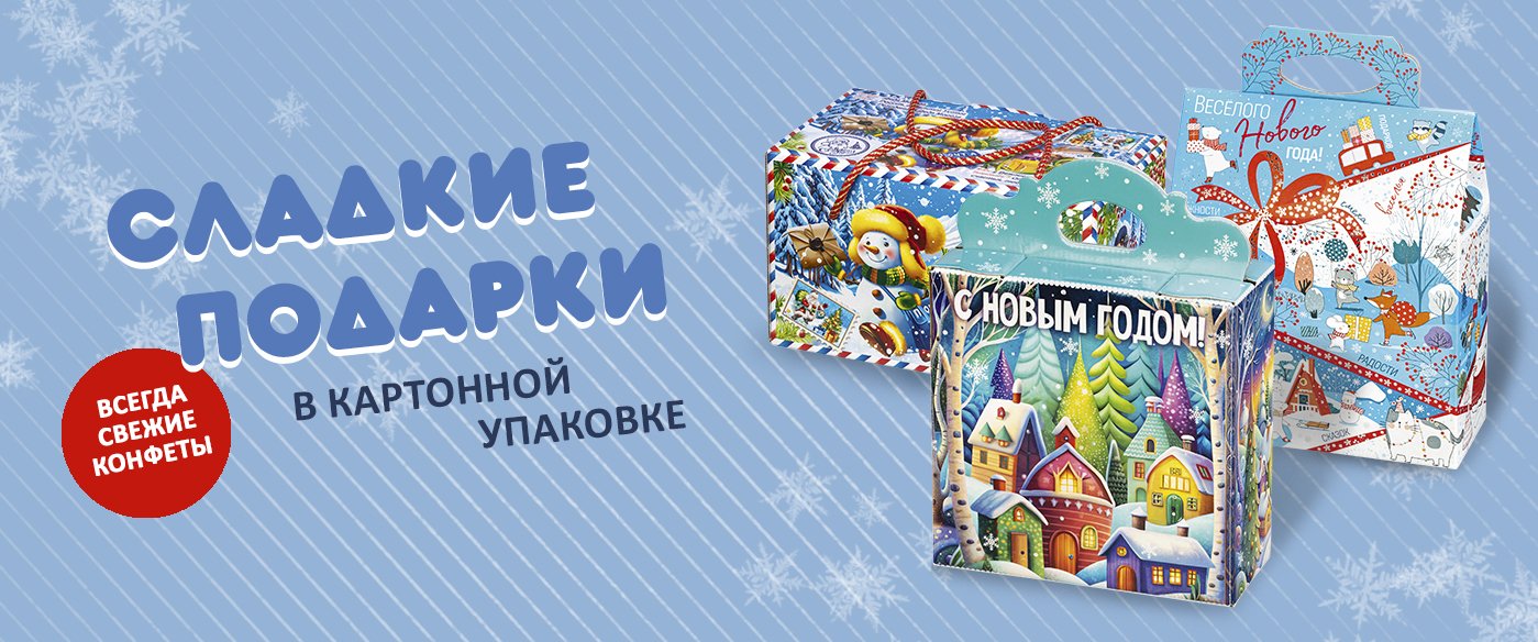 Для вас предоставлен широкий выбор детских и взрослых новогодних сладких подарков в нашем интернет-магазине. Мы работаем с лучшими кондитерскими фабриками. Наши подарки содержат только свежие продукты такие как: конфеты, вафли, печенье, мармелад, сухофрукты в шоколаде и много другое. Составы настолько многообразны, что мы можем угодить даже самому требовательному клиенту.